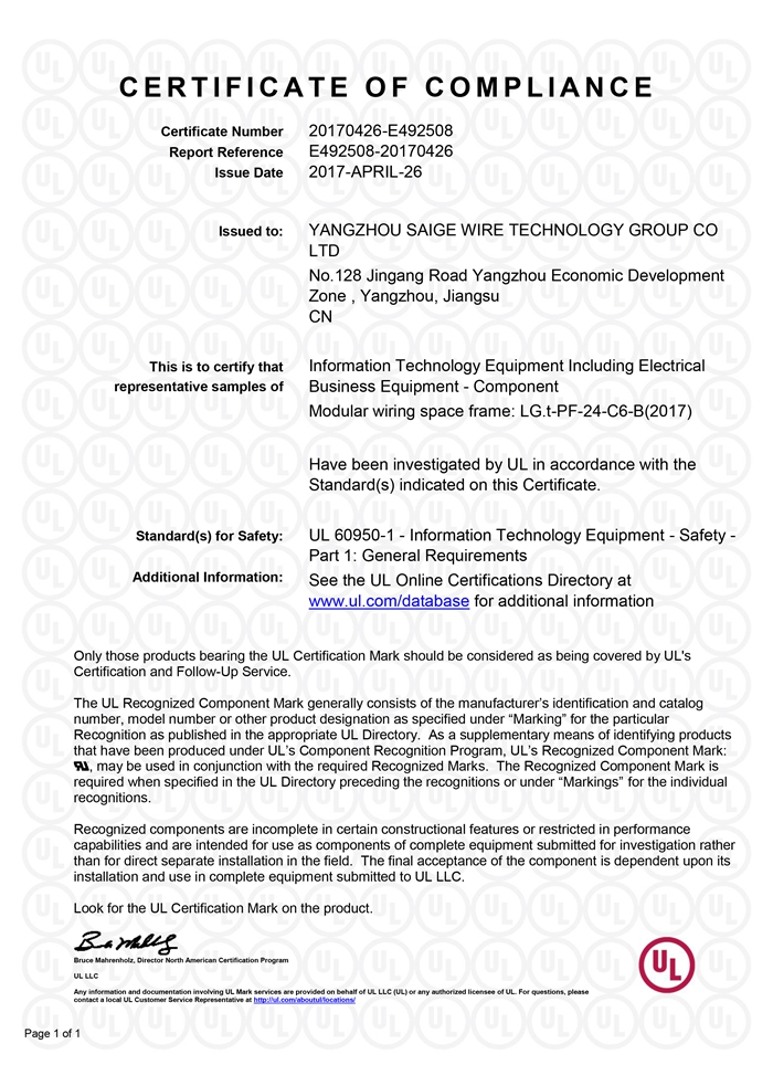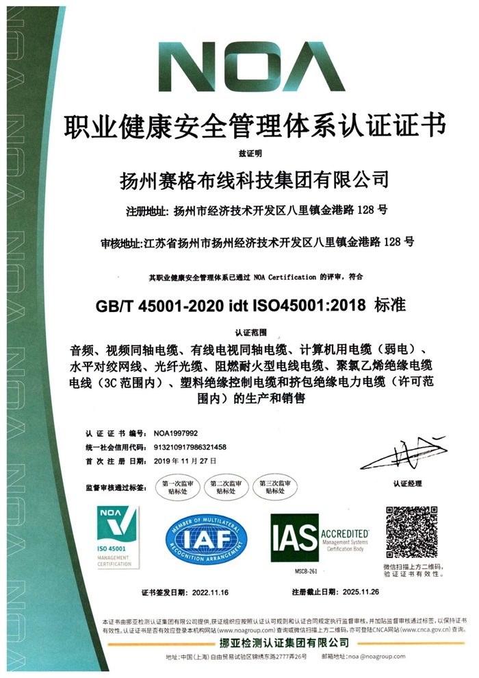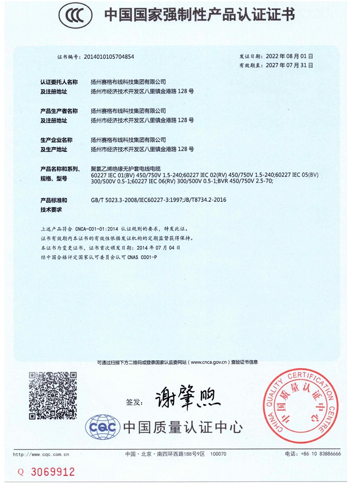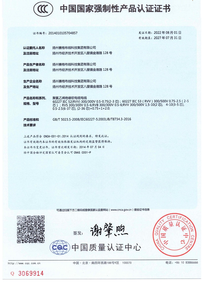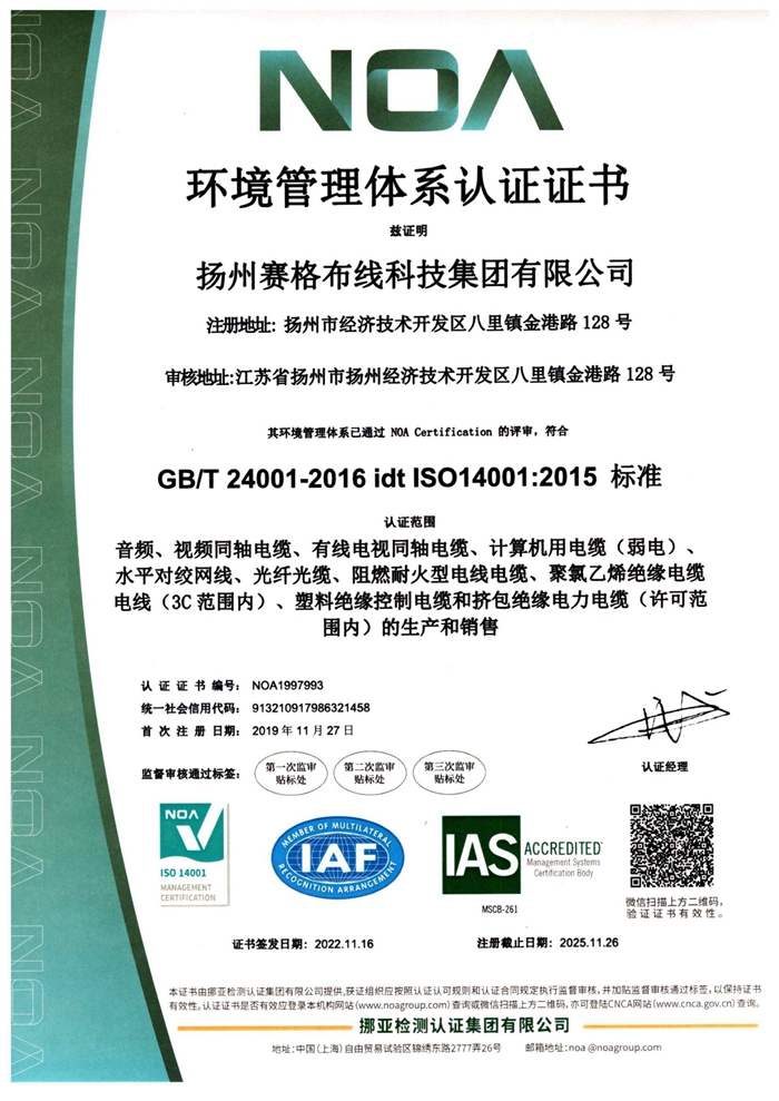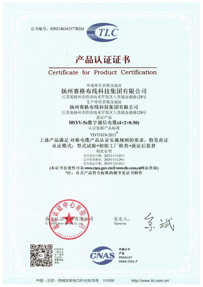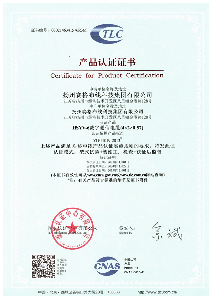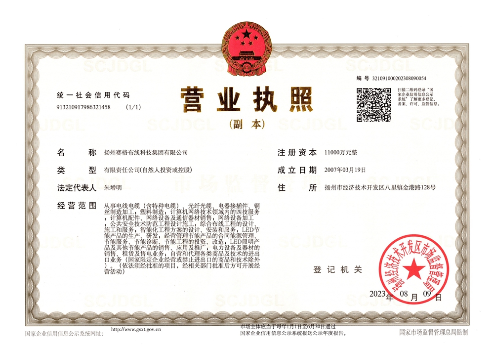 “賽格集團”位于美麗的揚州,公司占地面積106800平方米,固定資產20000萬元,職工近千人,其中各類專業(yè)技術人員過百人,系中國安全防范產品行業(yè)協(xié)會理事單位。公司擁有各種先進的綜合布線產品及線纜制造和實驗檢測設備,產品嚴格按照國家標準或行業(yè)標準組織生產,并已獲得國家質量認證中心CQC頒發(fā)的CCC證書和上海挪亞檢測認證集團有限公司頒發(fā)的ISO9001:2015證書,泰爾認證中心頒發(fā)的“泰爾認證”等!