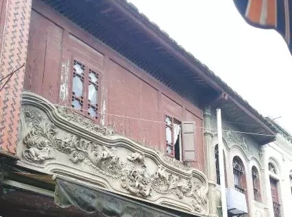 該宅位于***路14號。民國時期騎樓式建筑,房屋整體結(jié)構(gòu)保存較好,整體給人一種質(zhì)樸穩(wěn)重的感覺,外墻雕刻精細,內(nèi)部木結(jié)構(gòu)和木構(gòu)建保存較好,仍然有人居住。