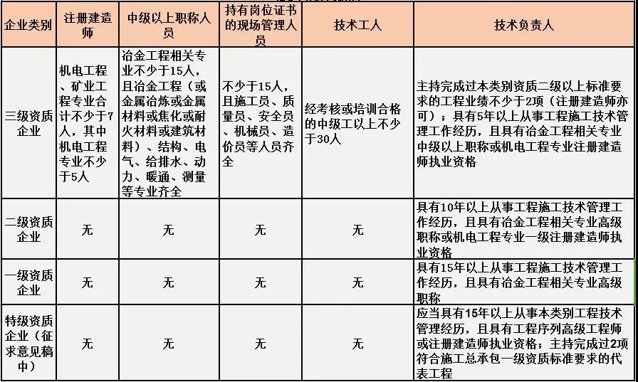 冶金工程施工總承包人員要求
